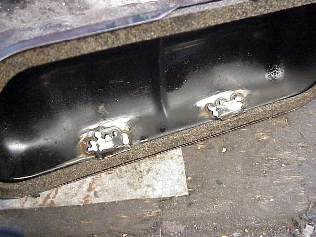 Blechlaschen auf die Innenseite der Ventildeckel. Aufpassen, daß die Bleche
